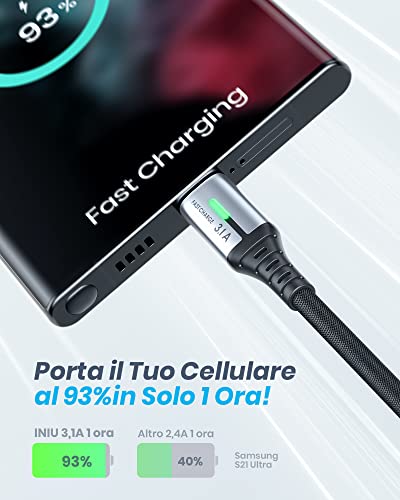 Cavo USB Type-C, INIU Cavo USB A a USB C 3.1A Ricarica Rapida [3Pezzi/0.5+2+2m] Lega Intrecciato in Nylon QC 3,0 Cavo Tipo C per Samsung S23 S22 Note 20 Xiaomi 11 Huawei Pixel 7 Pro Switch PS5 ECC.