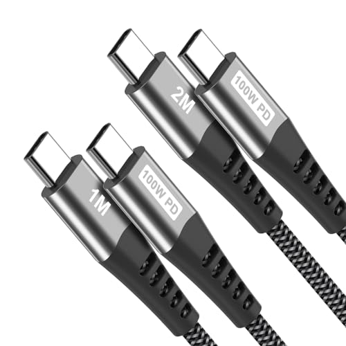 Cavo USB C USB C 100W 1M+2M, Cavo USB Type-C Ricarica Rapida 5A Cavo Type C to Type C Cavetto USB C Cavo Tipo C Cavo Caricatore per iPhone 15 Pro Max/Plus,iPad Pro,Samsung Galaxy S23 Ultra S22 S21 S20