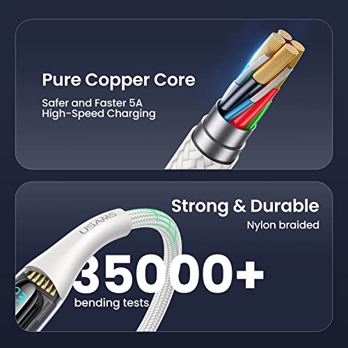 Cavo USB Type-C, PD 100 W Cavo USB C to USB C Ricarica Rapida USB C Display LED QC 4.0 5A Nylon Cavo Tipo C per MacBook Pro iPad Pro 2020 Samsung S21 S20 Dell Pixel XPS Huawei 1,2M Bianco