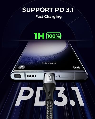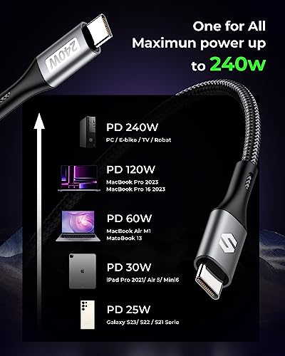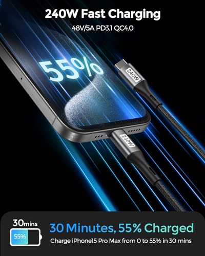 【Ricarica rapida 240W PD3.1 48V 5A】Cavo USB C a USB C supporta la tecnologia di ricarica rapida PD3.1 e QC4.0 e consente una potenza di uscita fino a 240 W. Perfetto per laptop da gioco e versatile compatibile con una potenza di uscita di 200 W/170 W/140 W/100 W/65 W/18 W per caricare rapidamente qualsiasi dispositivo.