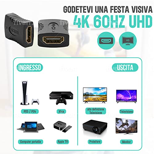 Prolunga i Tuoi Cavi HDMI - Collega due cavi HDMI corti per un unico cavo più lungo con il nostro accoppiatore femmina-femmina. Basta inserire i cavi HDMI 2.0 maschi nelle prese e il gioco è fatto!
