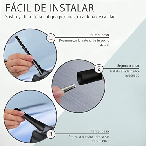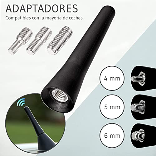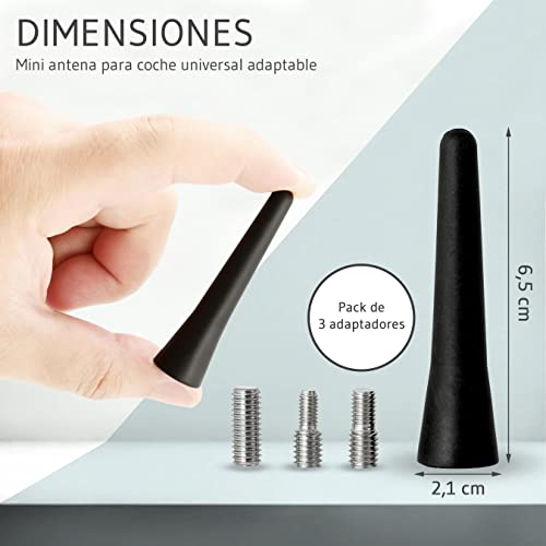 Typicshop - Antenna Auto Mini Universale da 6,5 cm - Antenna Auto Corta Radio Am/FM (Adattatore Filettatura 4, 5 e 6 mm) - Nero