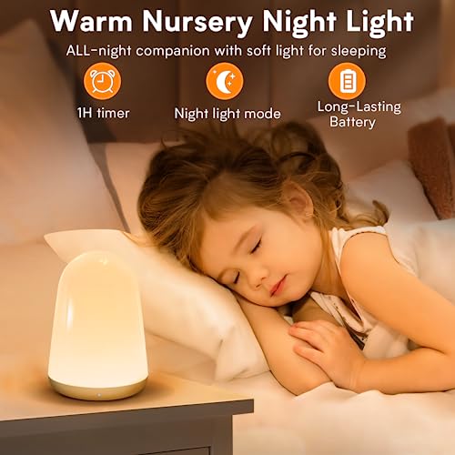 Tyreses Luce Notturna Bambini,Lampada da Comodino Touch Dimmerabile con 1H Timer, Multicolori LED Luce Notturna Ricaricabile da Bambini Neonato Cameretta Bambino Regalo