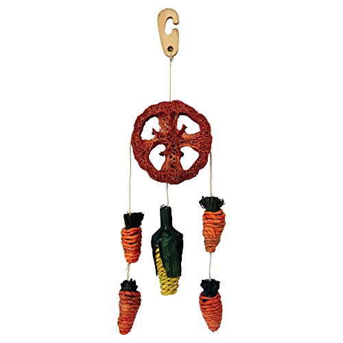 Mobile goloso e divertente per il vostro coniglio contiene 5 carote in foglia di mais e 1 rondella di luffa, per variare i piaceri