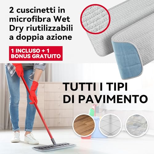 Morbido panno in microfibra Dual-Action - Il nostro mop per pavimenti di alta qualità è dotato di un panno in microfibra lavabile e riutilizzabile, che con la corretta manutenzione, è possibile utilizzare per più di 300 volte.