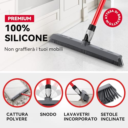SICURA PER I MOBILI: La scopa con tergipavimenti può essere utilizzata per tutti i lavori di pulizia, semplici o complicati che siano, senza danneggiare le superfici. Le setole di 41cm sono fatte al 100% di silicone, mentre il manico in 4 parti di alluminio antiruggine ha una finitura verniciata a polvere e ti aiuta a pulire le aree più difficili da raggiungere.