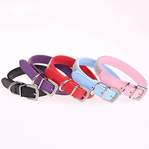 Tyrrdtrd Collare regolabile in pelle sintetica con strass per cucciolo di taglia media e grande cane viola M