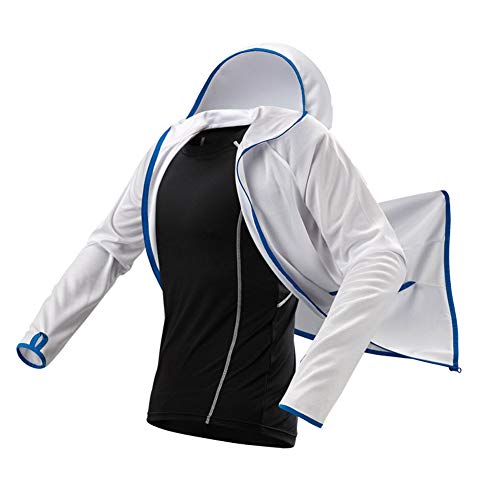 Tyrrdtrd Uomini Giacca Da Pesca All'aperto Quick Dry Idrofobico Manica Lunga Con Cappuccio Cappotto Cerniera Pesca Protezione Solare Abbigliamento Bianco M