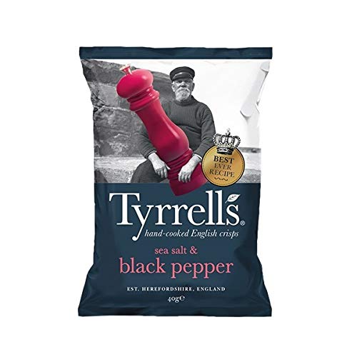 CONTENUTO - A casa riceverai un sacchetto da 40 g di Sea Salt & Black Pepper Tyrrells. Queste patatine al sale marino e pepe nero sono ideali come snack per merende, aperitivi, antipasti o feste. Queste patatine sono senza coloranti ne zuccheri aggiunti
