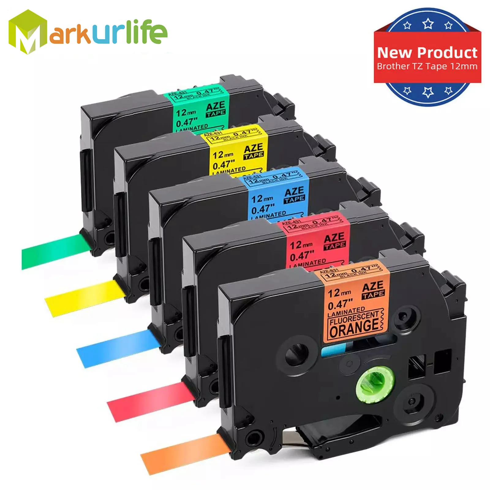 5 Pack TZe-631 TZe-531 TZe-431 Compatible for Brother P-Touch 0.47'' Label Tapes TZe-731 TZe-B31 Standard Laminated Cassette