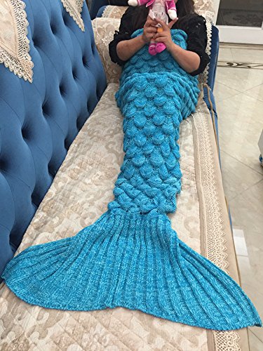 U-MISS Lana Sirena Coperta a Coda a Forma di Sirena, Utilizzabile Come Coperta per Divano Letto, Adulti (180 * 90cm),Blu-S