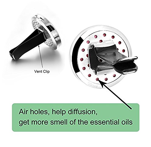 U-picks Car Fragrance Olio Essenziale Diffusore Vent Clip Car Deodorante Profumo Morsetto In Acciaio Inox Medaglione con 18 Pastiglie di Riempimento Olio (Angelo + Loto)
