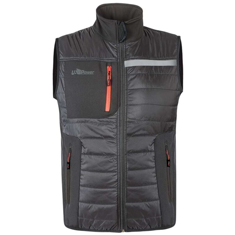 WALL Asphalt Grey.GILET - U-POWER FU278AG Gilet da lavoro con imbottitura in grafene dalle elevate proprietà di termoregolazione in grado di disperdere il calore quando necessario e mantenere il microclima ideale sul corpo con le basse temperature. L'innovativo tessuto grafene garantisce, infatti, una distribuzione omogenea del calore rendendo questo gilet imbottito uomo adatto a qualsiasi condizione climatica, assicurando il massimo comfort. Gilet idrorepellente con proprietà batteriostatiche di controllo dei cattivi odori e una migliore igiene del capo anche con uso prolungato. Gilet multitasche con due tasche frontali dotate di chiusura zip, tasca verticale sul petto con cerniera e tasca interna con chiusura a velcro. Fondo e giro maniche in tessuto elasticizzato, inserti laterali in morbido Softshell elasticizzato per garantire una vestibilità ottimale e comodità. Wall è un gilet traspirante dal design sportivo con stampa logo reflective “U-Power sul lato destro del petto e stampa