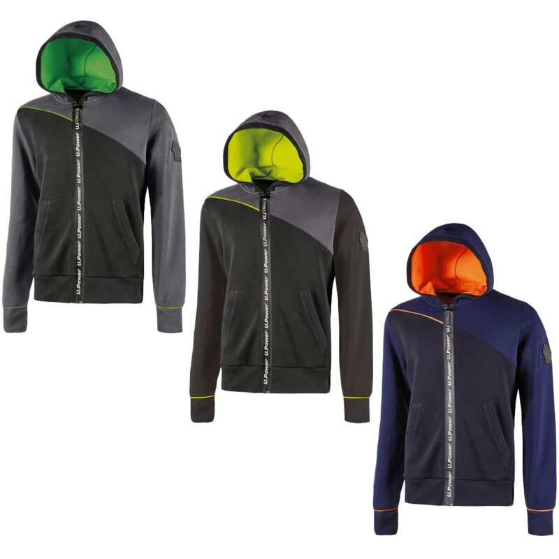 Tasche applicate con ingresso obliquo, Polsi e fondo a costine elasticizzate, Inserti in piping fluo elasticizzato Composizione: 70% cotone, 30% poliestere - 310 gr/mq Normativa: CE EN ISO 13688, EN 14058
