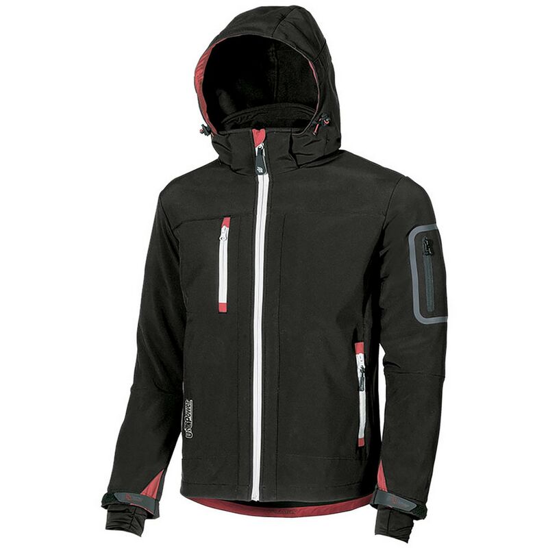 Utilizzo 4 stagioni. realizzata in 96% poliestere e 4% elastane, 310 gr/m2 con membrana tpu. tessuto antivento ed idrorepellente. tasca portacellulare su petto con chiusura zip, tasca supplementare su manica termosaldata. cappuccio staccabile con zip, man