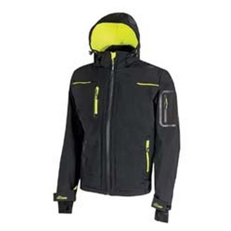 Giacca in tessuto soft shell impermeabile, traspirante e antivento - comoda e resistente con fodera interna in morbido micro-fleece fluo - dotata di tasca porta cellulare sul petto con tecnologia free sound con chiusura zip fluo, due tasche frontali chius