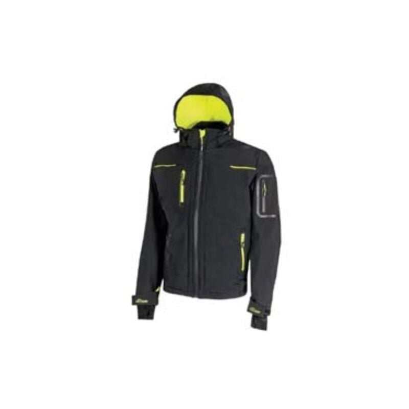 Tg.m giacca in tessuto soft shell impermeabile, traspirante e antivento - comoda e resistente con fodera interna in morbido micro-fleece fluo - dotata di tasca porta cellulare sul petto con tecnologia free sound con chiusura zip fluo, due tasche frontali chiuse con zip fluo e coulisse antimpigliamento regolabile all'interno, due ampie tasche interne e tasca supplementare termosaldata su manica sinistra - chiusura centrale con zip impermeabile - inserti in reflex per garantire la massima visibilità - con maniche preformate per vestibilità ottimale - cappuccio regolabile e staccabile - polsini regolabili con velcro e polsino antivento elasticizzato con foro passa-pollice - fondo sagomato - nastro reflex su colletto nella parte posteriore - tessuto 96% poliestere, 4% spandex - membrana u-tex - 310 gr/mq Categoria merceologica: Abbigliamento da lavoro - Antinfortunistica e abbigliamento - Giacche da lavoro
