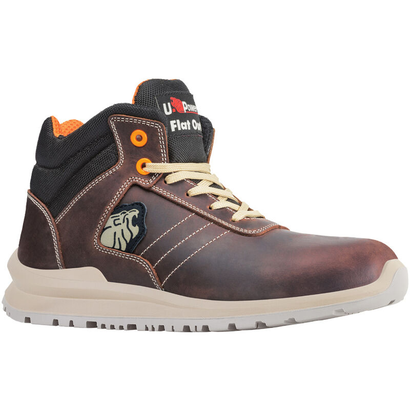 Ken è una scarpa antinfortunistica alta facente parte della linea Flat Out di U-POWER. Tomaia in morbida e resistente pelle pull-up idrorepellente, suola in PUTR antiscivolo ed intersuola in soffice PU espanso. Puntale AirToe® in alluminio e soletta con sistema antiperforazione tessile no-metal Save & Flex Plus. Fodera Wingtex a tunnel d'aria traspirante. Calzata di forma anatomica Natural Confort 11. Contenuto della confezione: 1x Scarpa Flat Out Ken U-POWER - Taglia 43