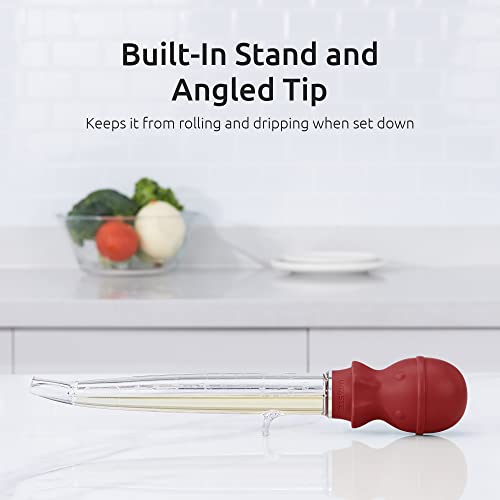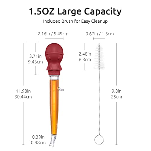 U-Taste Grande Baster per Tacchino Angolato: 109℃ Resistente al Calore Pipetta per Grasso di Carne in Tritan con Bulbo di Polpo in Silicone e Spazzola per la Pulizia(44 ml, Rosso)