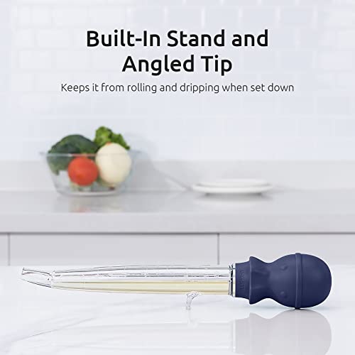 U-Taste Grande Baster per Tacchino Angolato 109℃ Resistente al Calore Pipetta per Grasso di Carne in Tritan con Bulbo di Polpo in Silicone e Spazzola per la Pulizia (Blu Mezzanotte)