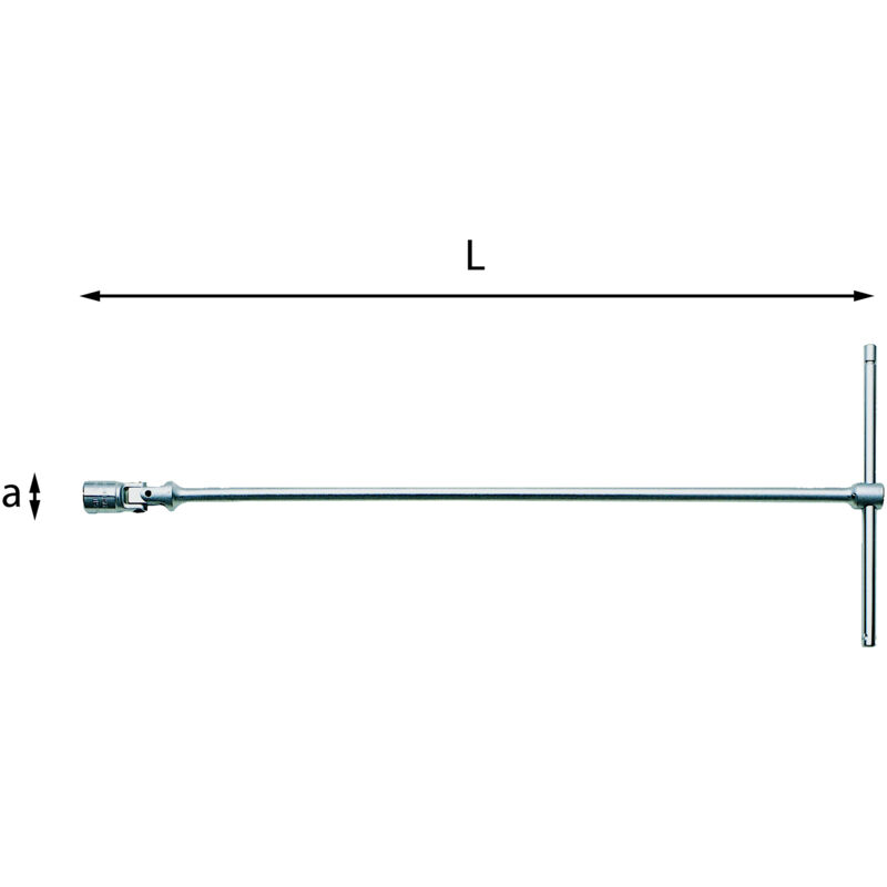 CHIAVI A T SNODATE CON BOCCA ESAGONALE 276 CE Modello a snodo cardanico con molla di frizione per il preposizionamento della bussola Asta di manovra scorrevole ed estraibile Codice Bocca esagonale mm a mm L mm U02760400 6 9,5 398 U02760401 7 10,7 398 U02760402 8 12 398 U02760403 9 13,2 398 U02760404 10 14,6 431 U02760405 11 15,8 431 U02760406 12 17 434 U02760407 13 18,7 466 U02760408 14 20,7 466 U02760409 15 20,9 497 U02760410 16 22,2 499 U02760411 17 23,4 499 U02760412 18 24,7 501 U02760413 19 26 523 U02760414 20 27,3 526 U02760415 21 28,5 526 U02760416 22 29,7 526 U02760417 24 32,5 531