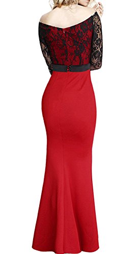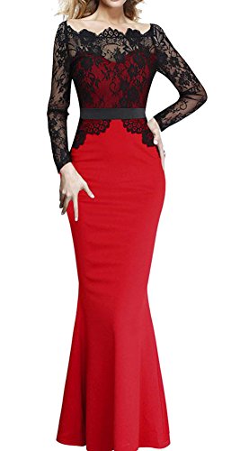 U8Vision Abito da donna a maniche lunghe in pizzo, taglio fishtail, ideale come abito da sera, da gala, da sposa, taglie S - XXL