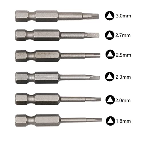 Uacen - Set di 6 punte per cacciavite triangolari in acciaio S2, esagonali triangolari da 1/4", lunghezza 50 mm