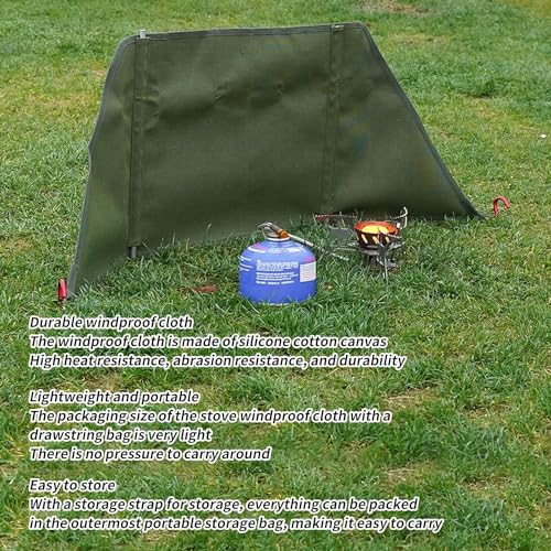 Frangivento antivento: utilizzando un tessuto di tela di alta qualità, i frangivento da campeggio hanno un buon effetto antivento, quindi non è necessario preoccuparsi del vento o della sabbia che soffia sulla stufa.