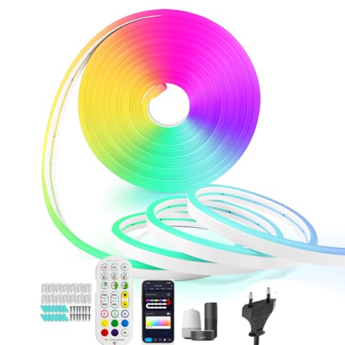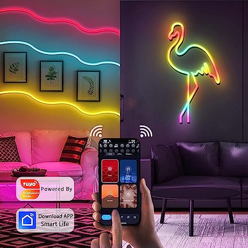 UannTTii Smart Neon Light Strip Tuya WIFI RGBIC Neon DIY Light Strip Dimmable Dream Color Waterproof Music Sync Works with Smart Life App Amazon Alexa and Google Home 5m