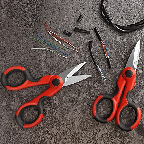 Uaugulft Forbici da Elettricista, Forbici per Elettricisti Dentate in Acciaio Inossidabile, Tagliacavi con Impugnatura Morbida, Forbici da Elettricisti Multiuso, Set da 2 Pezzi, Rosso e Nero