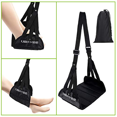 UBAYEE Poggiapiedi Volo, Amaca Piedi da Viaggio per Aereo, Pieghevole, Portatile, Regolabile, Previene Indolenzimento e Gonfiore - Nero