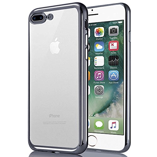 UBEGOOD iPhone 7 Plus Custodia iPhone 7 Plus Case Bumper [Shock-Absorption] Soft TPU Silicone Case Protector Cover per iPhone 7 Plus (Nero argento)
