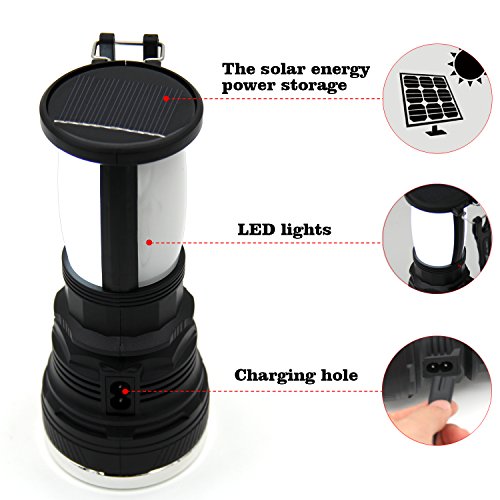 Ubegood Portatile LED lanterna campeggio, solar rechargeable LED lamp for hiking/camping, ultra luminoso di campeggio Lampada(funzione di potere mobile)