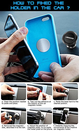 UBEGOOD Supporto Auto Metallo Supporto Cellulare [360° Girevole] Auto Magnetico Porta Cellulare per iPhone X / 7/8 Plus/Sony/Galaxy S9 / Note 8 / LG/Nexus ECC - Nero