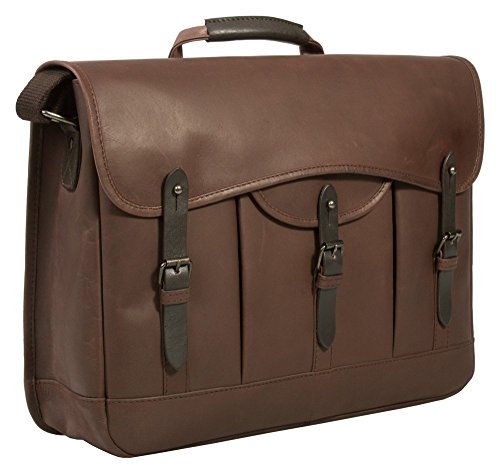 Dimensioni: 40,5 x 30,5 x 11,5 cm. Scomparto imbottito per laptop da 15". Tasca con cerniera da 31,8 cm sul retro della borsa. Realizzato in pelle bovina pieno fiore leggermente cerata di colore marrone con finiture marrone scuro conciate al vegetale