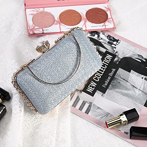 UBORSE Clutch Donna Cerimonia,Clutch Gioiello Borse Cerimonia Borsa Brillantinata Elegante Strass Per Fidanzamento/Matrimonio/Cocktail Festa/Festa Serale/Festa a Tema(Blu9)