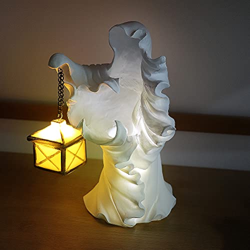 Ububiko Hell's Messenger Statua di Halloween con Lanterna, Il Fantasma in Cerca di Luce, Lanterna con Decorazione Strega di Halloween, Statua Realistica in Resina Fantasma Senza Volto per Halloween