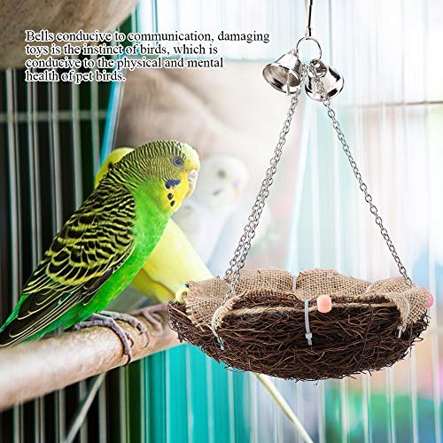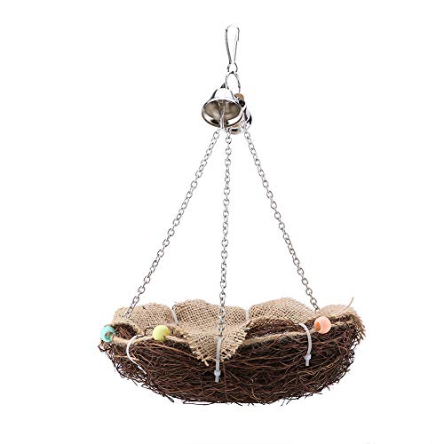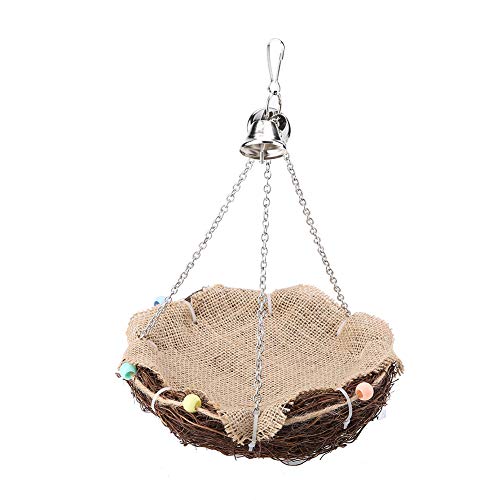 Nido di uccelli in rattan, campane di uccelli appesi a battente Accessori per gabbia per uccelli Pappagallo in paglia di rattan Altalena appesa Giocattolo per cacatua Ara Amazon grigio africano Budgie