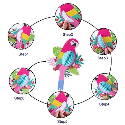Uccelli Tropicali Decorazioni, HAOYUNLAI 6 Pezzi Pappagalli Decorazioni da Appendere, Pappagallo Carta Hawaiian per Giardino Festa Compleanno Party (A)