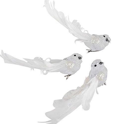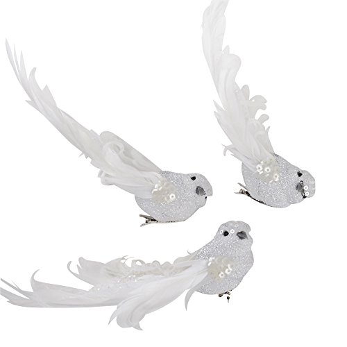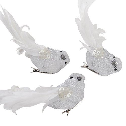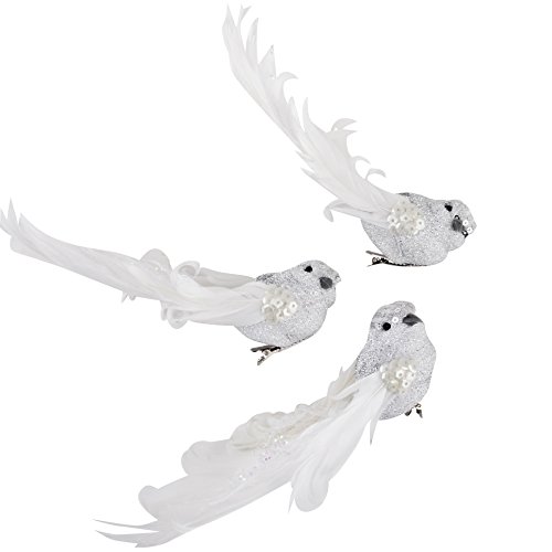 Set di 3 uccellini con glitter, su molletta, decorazione natalizia per l'albero, Plastica, argento, 4x18x8cm