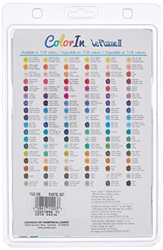 Uchida, ColorIn, 12 Pezzi, LePlume II Penne Libro Colori Pastello