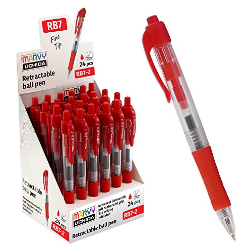 Uchida RB7 - 2 Marvy Retractable Ball Point Pen 0.7 mm, box of 24 pezzi, Rosso Ink