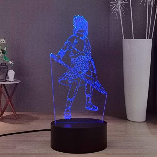 Uchiha Sasuke - Lampada 3D giapponese con statuette di manga per la camera da letto, con USB, lampada da scrivania a LED Uchiha Itachi per bambini con 16 colori