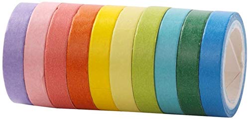 UClever 10 decorativo mascheratura Washi - Adesivo colorato arcobaleno Nastri Fai Da Te Nastri Etichette