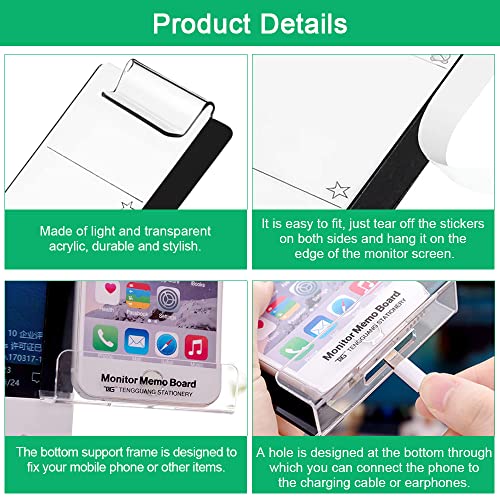 UCNOGIM 2 Pezzi Monitor Memo Board 30*8cm Acrilico Trasparente Monitor Computer Pannello Laterale Scheda Memo per Monitor con Note Adesive per Telefono Schermo Monitor per Computer Pannello Laterale