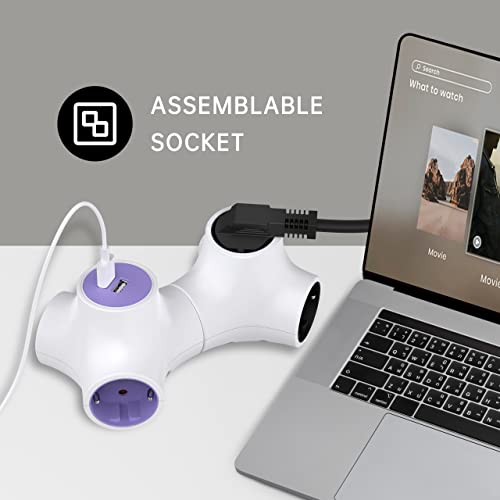 【Gruppo ciabatta a 4 pezzi】 Adattatore a 3 vie con 2 USB;