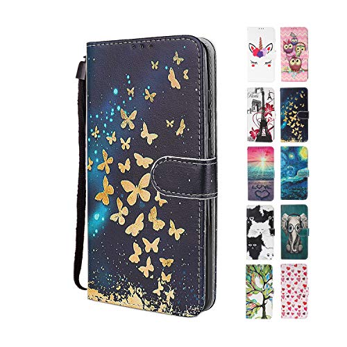 UCool Cover Custodia Samsung Galaxy A51 4G Caso Flip Portafoglio a Libro Pelle PU Belle Farfalla Dorata 3D Disegni Bumper Protettiva Antiurto