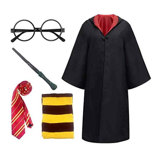Udekit Harry Potter Adulto Bambin Costume da Magia con Cravatta Occhiali Sciarpa e Splendore Bacchetta,per Halloween Carnevale Feste Cosplay Travestimento Accessori