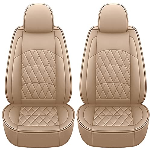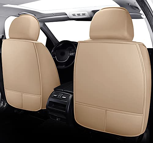 Udpomb 2 coprisedili anteriori di lusso, universali, in pelle, impermeabili, compatibili con airbag, design della borsa dello schienale, adatti per la maggior parte delle auto (Beige)