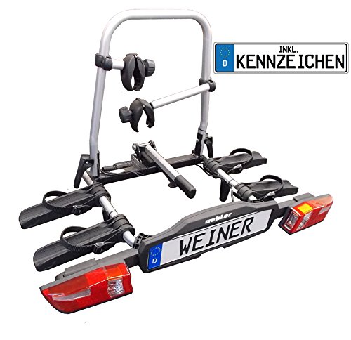 Uebler Porta biciclette in alluminio, pieghevole, mod. F22, per 2 biciclette, 15820, con targa